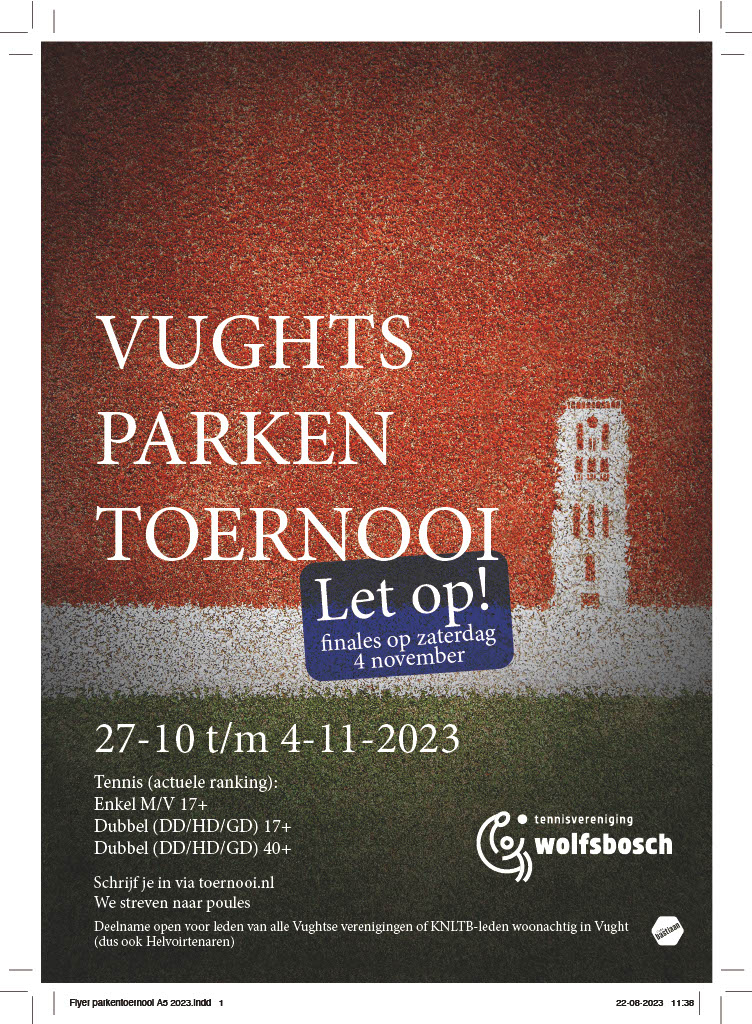 Dit jaar organiseert Wolfsbosch binnenkort het Vughtse Parkentoernooi. Het toernooi voor alle inwoners van Vught/Cromvoirt/Helvoirt die lid zijn van de KNLTB, of leden van de bond die niet in de gemeente Vught wonen, maar wel lid zijn van een Vughtse club.