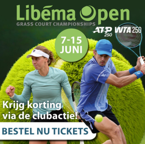 Ook dit jaar is onze vereniging partner geworden van het enige gras tennis toernooi van Nederland: Libéma Open in Rosmalen. Dit toernooi staat bekend om zijn intieme sfeer en uitstekende ambiance, dat gecombineerd wordt met toptennis van het allerhoogste niveau.